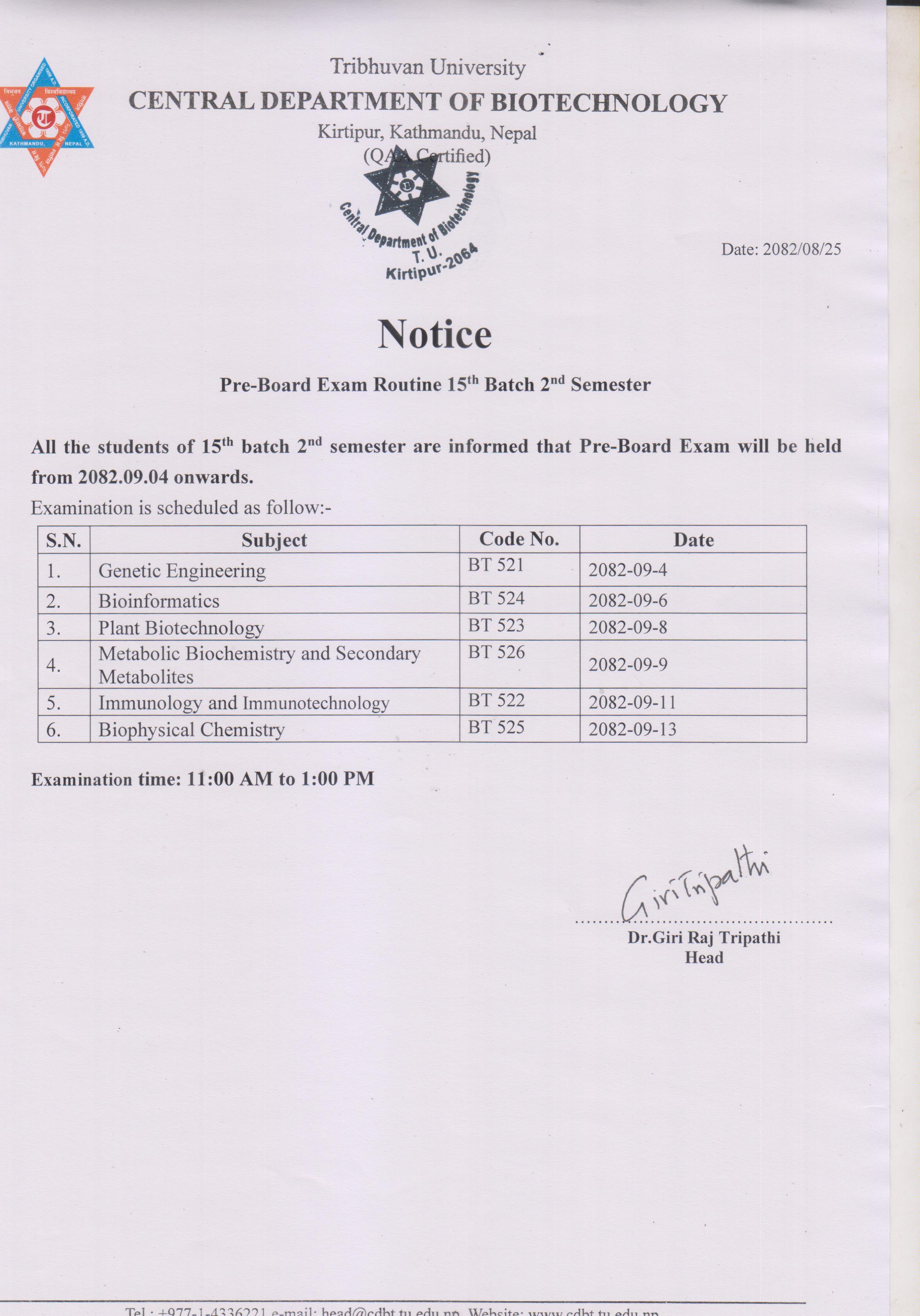 Pre-Board Exam Routine for 15th Batch