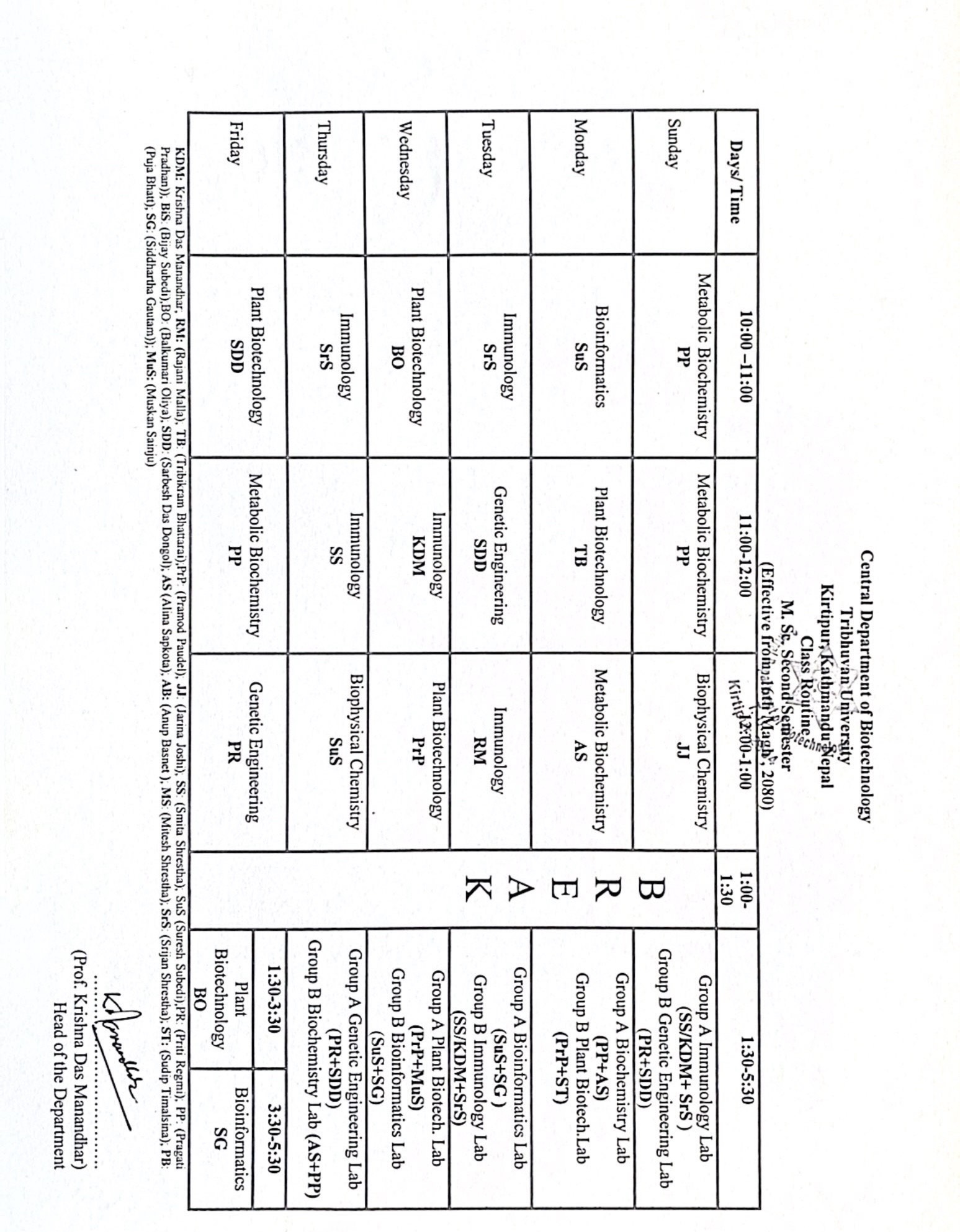 Routine of M.Sc. Second Semester 13th Batch (Effective from 16th Magh, 2080)