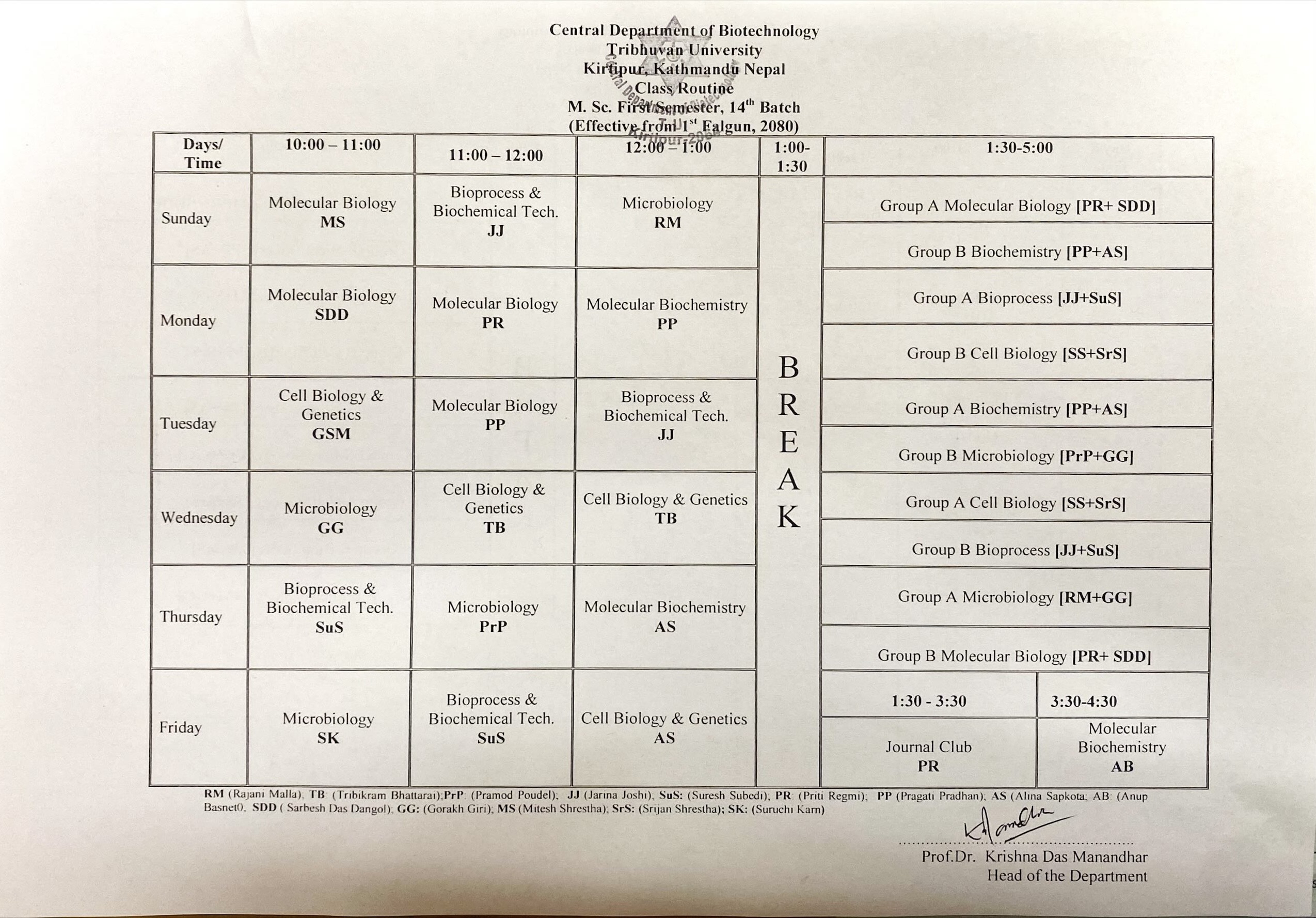 Routine of M.Sc. First Semester, Effective from 1st Falgun, 2080