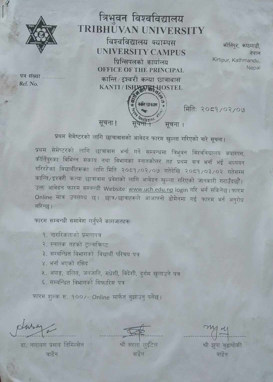 M.Sc. २०८२ सालकाे नयाँ विद्यार्थी भर्नाका लागि परी...