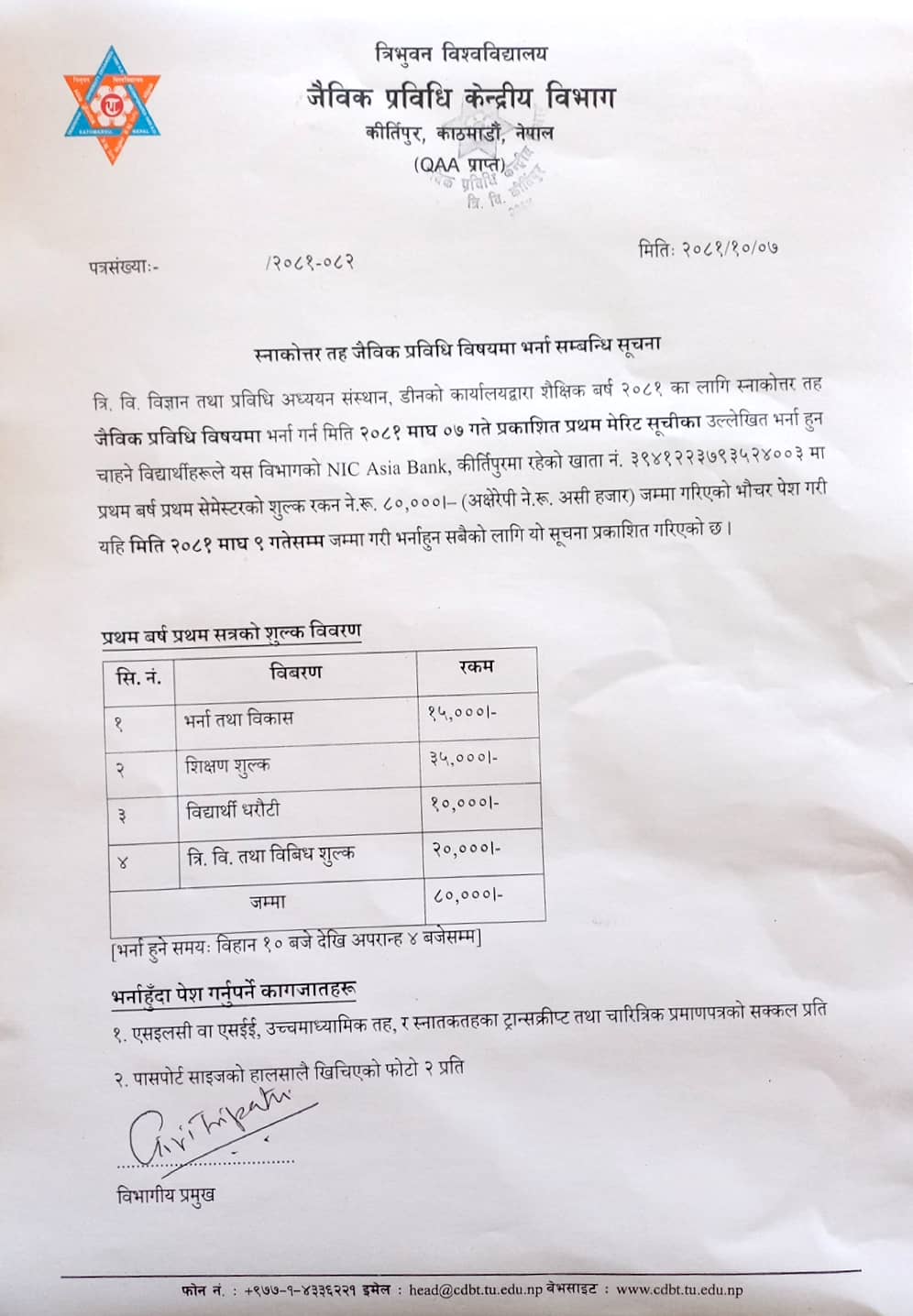 M.Sc. २०८२ सालकाे नयाँ विद्यार्थी भर्नाका लागि परी...