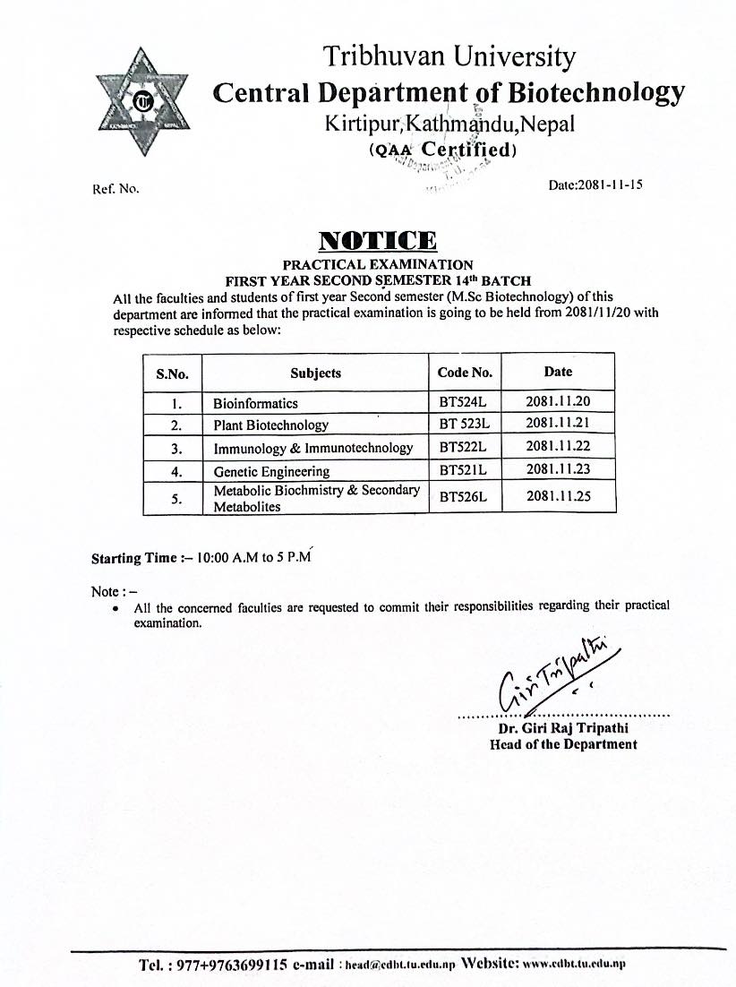 Notice for Practical Exam