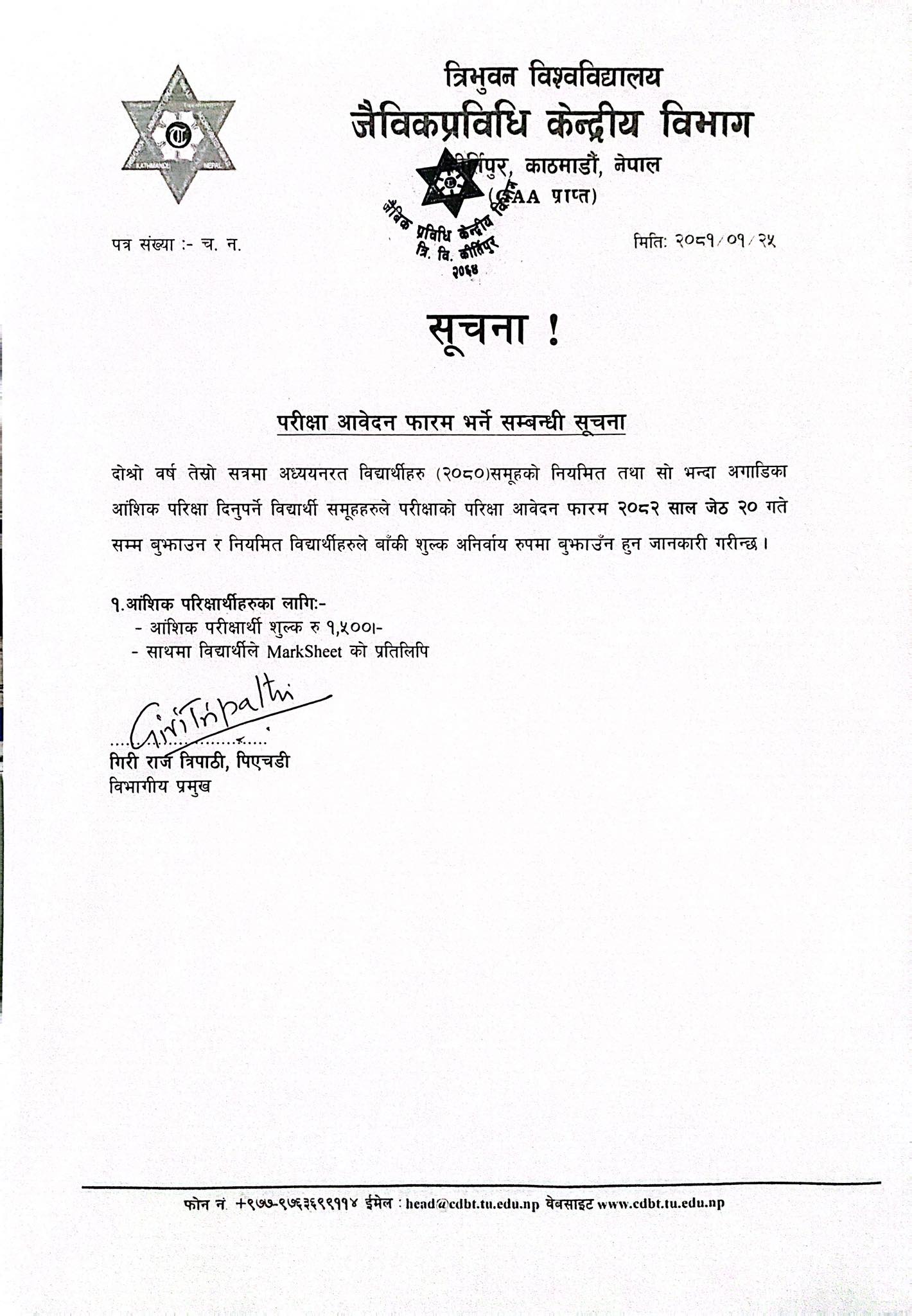 M.Sc. २०८२ सालकाे नयाँ विद्यार्थी भर्नाका लागि परी...