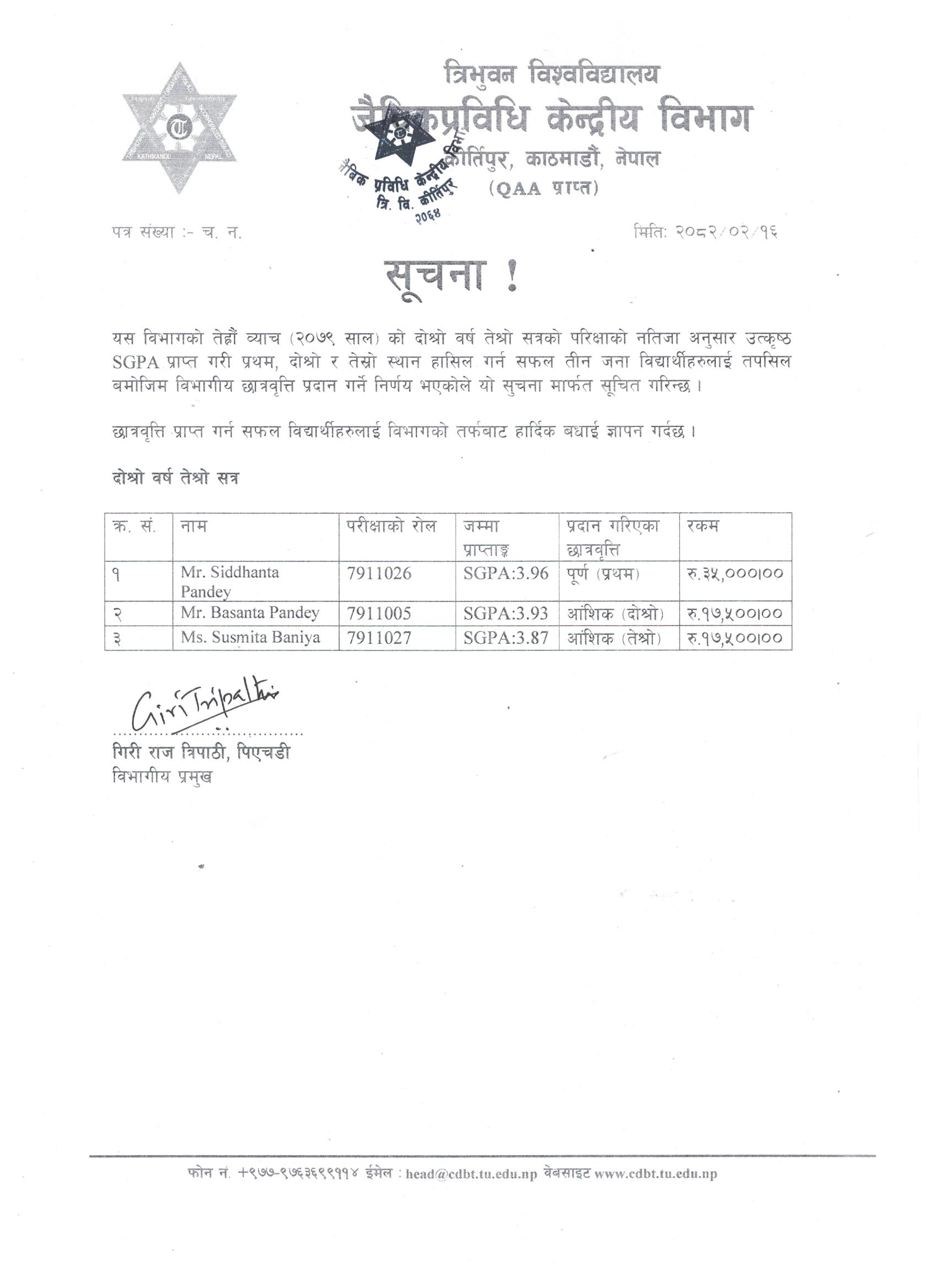 M.Sc. २०८२ सालकाे नयाँ विद्यार्थी भर्नाका लागि परी...