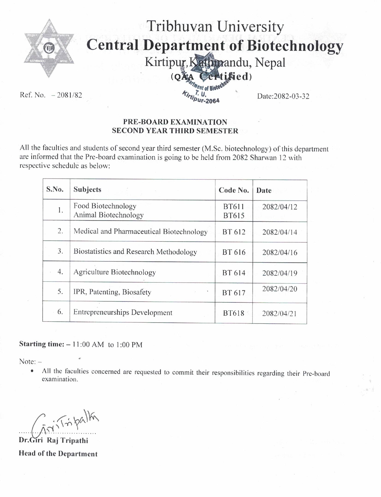 Pre-Board Exam Routine for 15th Batch