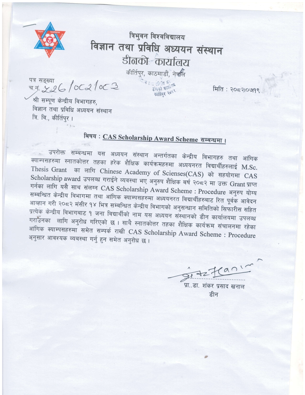 M.Sc. २०८२ सालकाे नयाँ विद्यार्थी भर्नाका लागि परी...